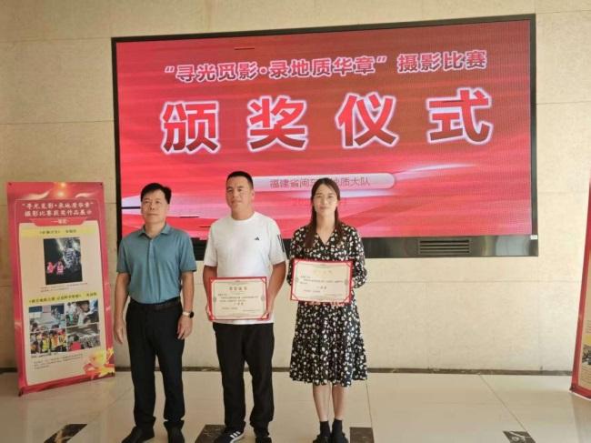 颁奖仪式上,队工会主席黄清萍宣读了获奖名单。经过评审小组从主题契合度、行业故事性等维度的严格评选,最终评出一等奖2名、二等奖6名、三等奖10名。队领导班子成员为获奖者颁发证书时,大屏幕同步展播获奖作品,引得现场阵阵赞叹。“自然的光和矿灯的光在熠熠发光的矿石上交相辉映,照片中导师带徒弟,把地质‘三光荣’精神传承,这就是我们地质人最真实的样子!”观看展览的职工动情地说道。