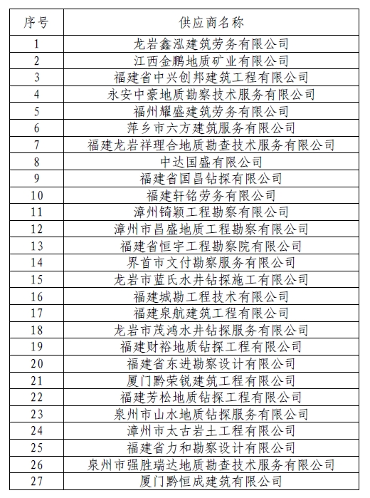 福建省闽东南地质大队钻探劳务供应商名录库