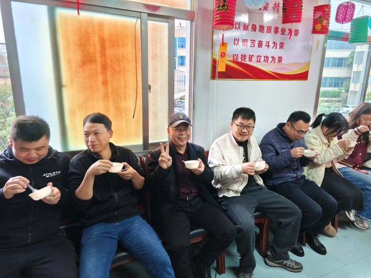 一颗颗亲手摇制的元宵,承载着职工们对团圆的期盼和对新一年的美好祝愿。待元宵制作完成后,工作人员将新鲜摇好的元宵下锅煮熟,热气腾腾、香气扑鼻的元宵端上桌,职工们围坐在一起,品尝着自己的劳动成果,软糯香甜的口感在舌尖化开,温暖直达心底。大家一边品尝元宵,一边畅谈工作与生活,在轻松愉悦的氛围中增进了彼此的交流,拉近了心与心的距离,充分感受到泉州地质大队这个“大家庭”的温暖。