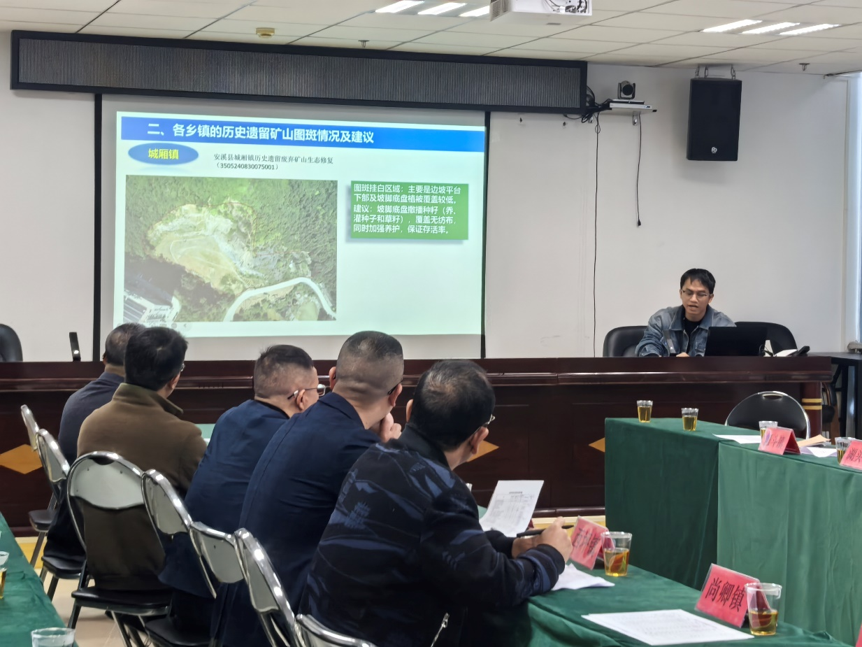 为深入践行习近平生态文明思想,牢固树立和践行正确政绩观,提升基层干部稀土资源管理保护及矿山生态修复治理水平及能力,3月13日,我队专家王仕彬、林俊伟受邀到安溪开展全县稀土资源管理及废弃矿山整治业务培训会,安溪县自然资源局、各乡镇分管领导和业务负责人等参加培训。